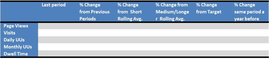Regardless who the receivers are (clients, managers, peers …) start always with a short presentation of how the site performed using a simple eye catching table: